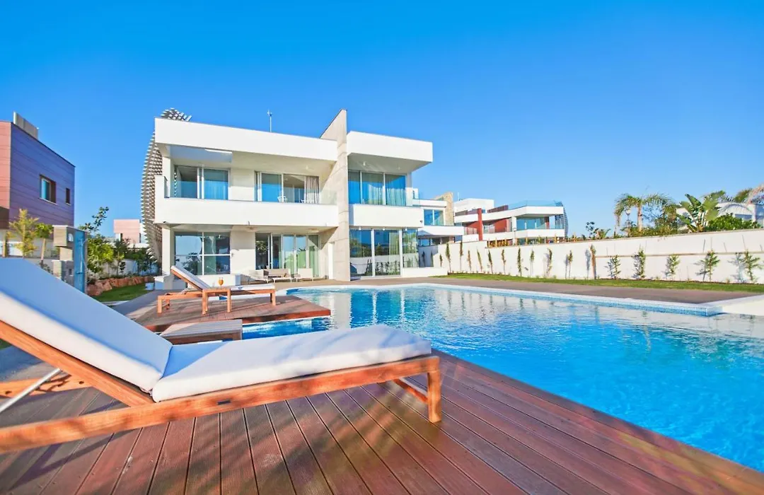 Situated about a 15-minute walk from the Ammos tou Kambouri Beach, the 5-bedroom Vivo Mare Beachfront Villas - Emerald Ayia Napa invites guests to relax at a terrace.